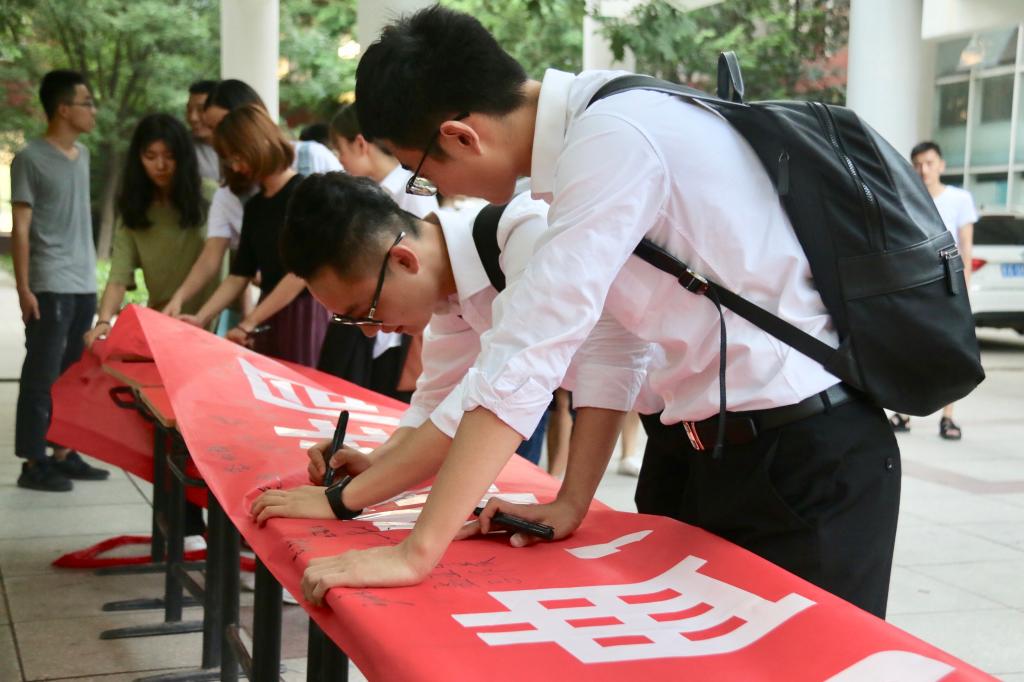 活动期间,教师及学生代表共同学习了《山东交通学院创建省级文明校园宣传手册》,并集体宣读了《创建省级文明校园、争做文明师生员工的倡议书》。大家在土木楼前开展签名志愿活动,悬挂宣传条幅,并自发对土木楼各教室及周围环境进行了清理打扫。
